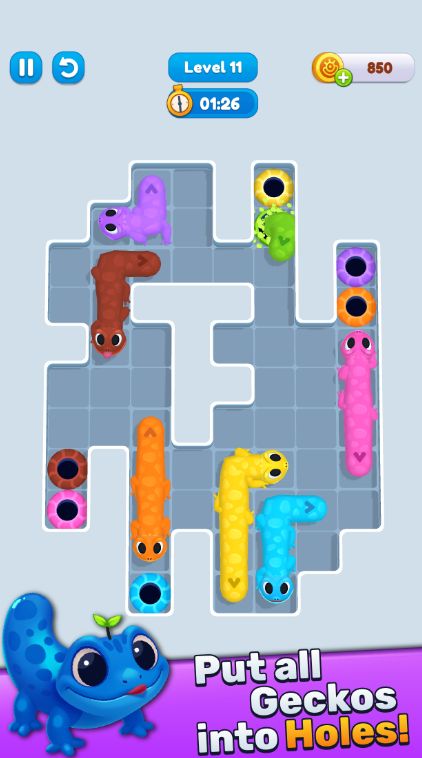 Gecko Out – яркое, красное и незабываемое приключение в мире головоломок. Игроков ждёт знакомство с гекконами, отличающимися по цвету и характеристикам. Им необходимо добраться к своим норкам как можно скорее, пока не закончится время. Думаете успеете вовремя? Тогда попробуйте скачать Gecko Out на андроид и помогите им. Каждый уровень – это свежее испытание, с которым вы легко справитесь благодаря интуитивно понятной механике управления. Ничего сложного – просто получайте удовольствие.