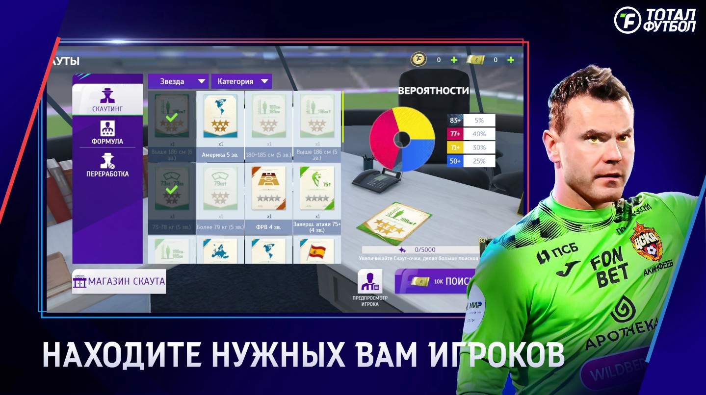 Разработчики превзошли многих конкурентов, использовав алгоритмы мощнейших ИИ, а также движок Motion Matching. Более того, для этой игры были задействованы передовые технологии захвата движения из Азии. В общем, встречайте реалистичные стадионы, футболистов, которые были воссозданы максимально точно. В движении можно наблюдать работу мышц и формы. Если скачать Тотал Футбол на андроид можно будет погрузиться в игру, почувствовать себя настоящей звездой на поле. И главная фишка – здесь полно футболистов из РПЛ.