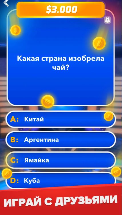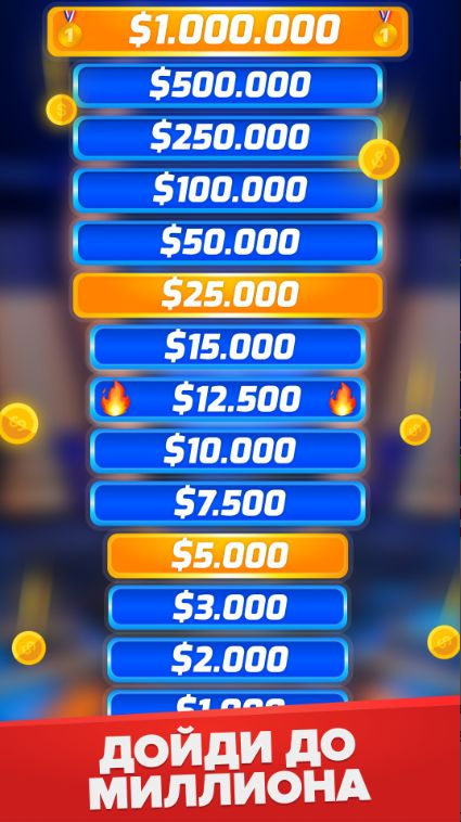 Миллионер: Викторина – интеллектуальная игра, в которой потребуются все ваши знания и даже больше. Необходимо продемонстрировать свой IQ и выиграть главный приз, о котором мечтают все. Докажите, что вы умнее многих и удачливее. Это не просто развлечение, но и тренировка для ума. Если скачать Миллионер: Викторина на андроид, нужно будет ответить на множество каверзных вопросов. Путь до миллиона будет сложным, но всё зависит только от знаний и правильных решений.