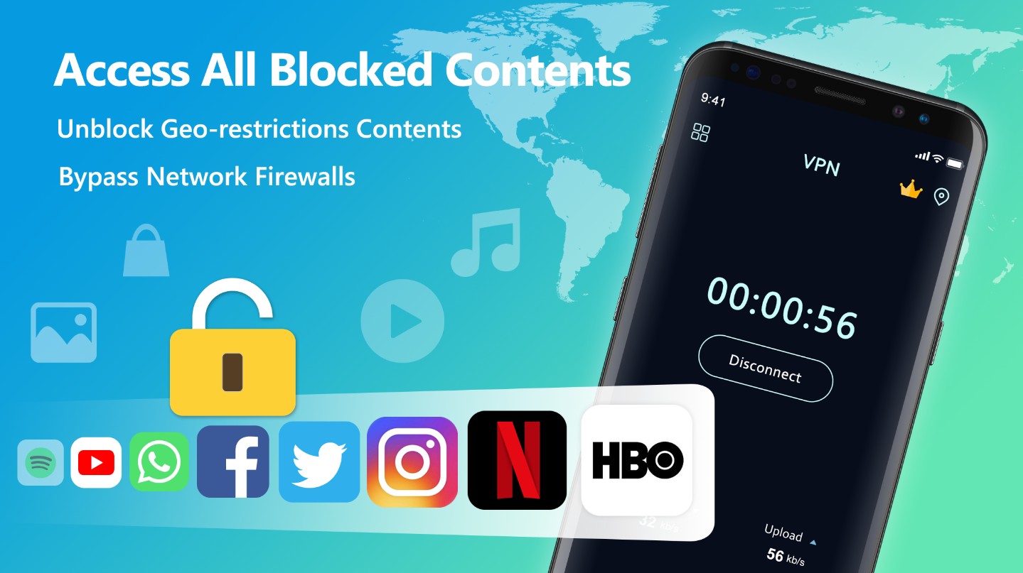 Free VPN Super™ - бесплатный ВПН – это неограниченный и быстрый прокси, который поможет пользоваться интернетом безопасно и анонимно. У него неограниченная пропуская способность, что заметно отличает его от других приложений. Скорость не падает, нет разрывов, а ещё он бесплатен. Если скачать Free VPN Super™ - бесплатный ВПН на андроид можно смотреть видео, целые фильмы и не переживать, что он прервётся на самом интересном месте.