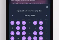 Мощная мотивация: Система «полос» (streaks) не даст вам сбиться с пути. Настройте частоту (например, «3 раза в неделю») и наблюдайте, как растёт ваша ценная серия выполненных дней.